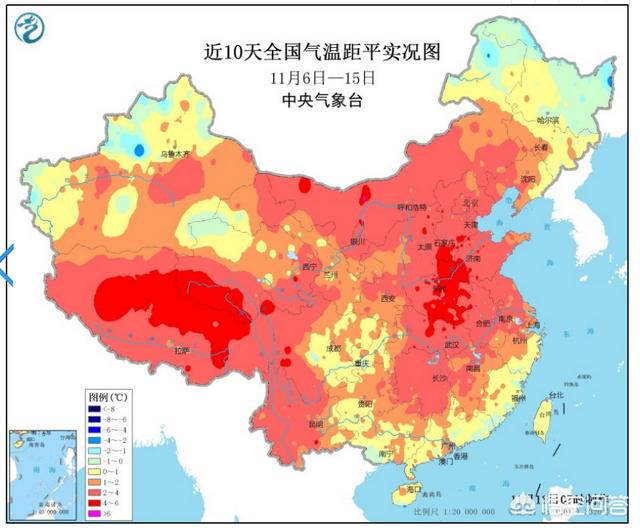 我们看上图,近10天全国气温距平实况图里告诉我们,长沙与全国一样,立冬后气温普遍高,红色区域气温高于往年,河南,河北、西藏、内蒙古、京津冀气温高于往年4~6°C,长沙、南昌、南京等地,气温偏高2~4°C。这是不能入冬的主要原因。