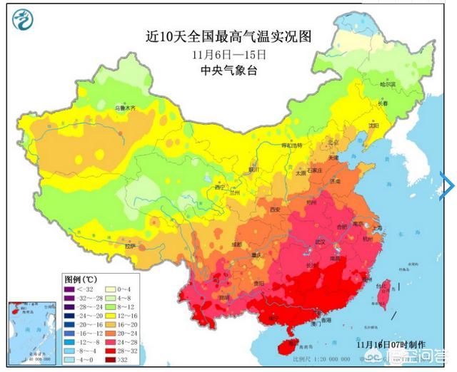 如果我们再看看最高气温更是偏高,长沙基本上是夏季气温呢,华南地区还更热,到现在为止还没有入秋,过着夏天的生活呢。