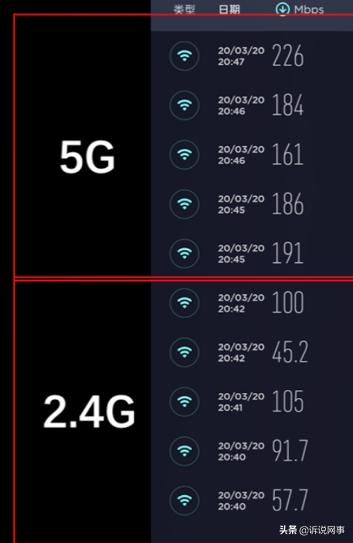 3、 如果你排除了以上2中情况,即你家的宽带速率很高,手机终端也支持5G频段,而你家里只是单频路由器,可以更换双频路由器,利用5G频段来提升WIFI速度,5G理论速度可以达到1G,而支持5G频段的手机速率也可以达到866M,接近1G。5G更大的频宽和更少的干扰,可以有效提升WIFI速度,小编在家实测,5G下行速度是2.4G的两倍。(小编就这个问题了做了一期视频,可点看小编头像观看)。