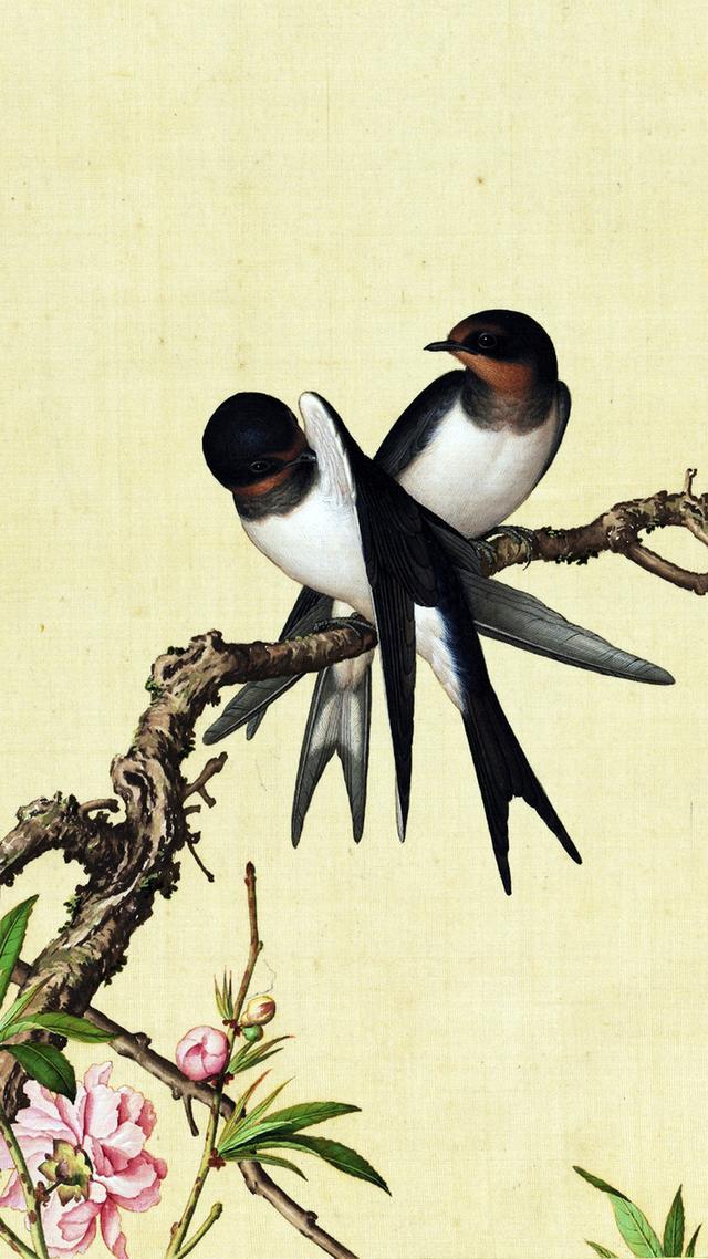 蝴蝶花间轻飞舞,几只花鹊绕庭空,