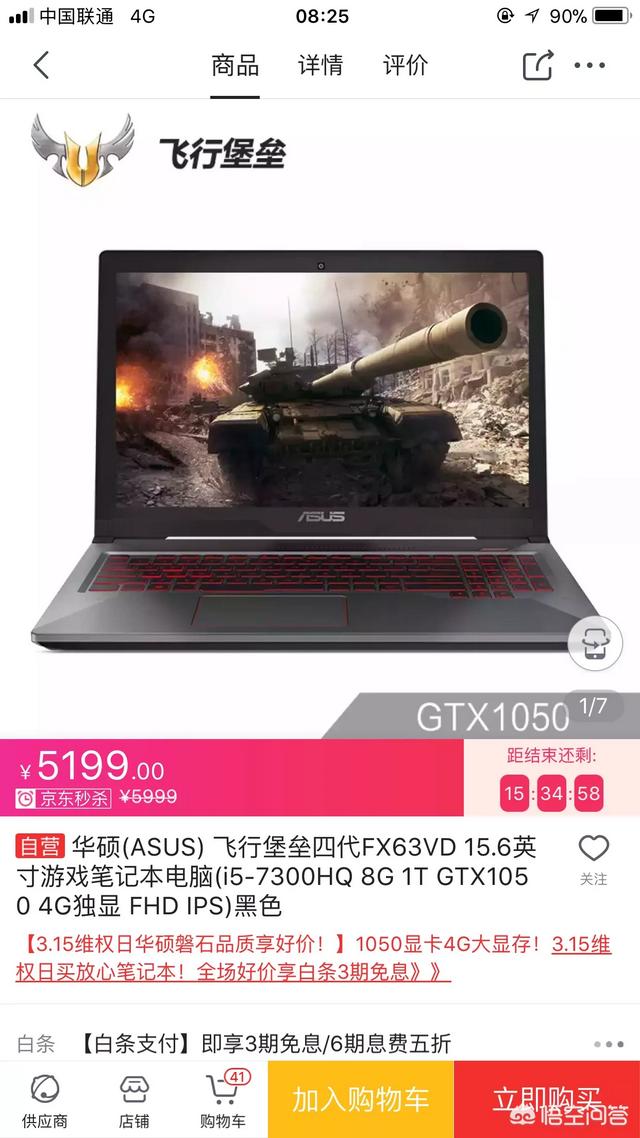 华硕(ASUS)飞行堡垒四代FX63VD 5199元
