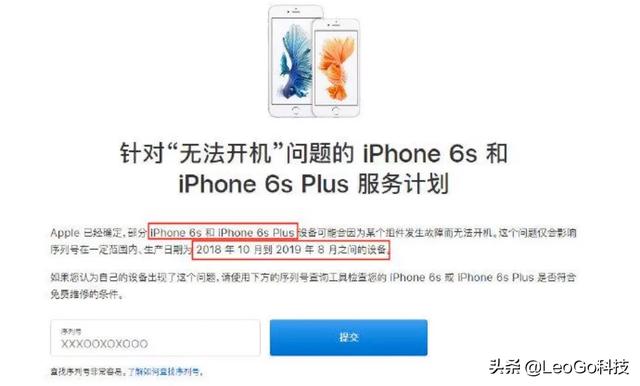 大家可以看看上图中标注了“针对无法开机问题的iPhone6s和iPhone6s Plus服务计划”。
