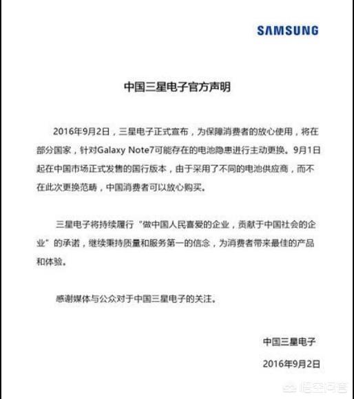 三星note 7于2016年8月推出,不久就出现了爆炸事件。三星表示“用户操作不当导致,应该使用官方充电器,并且充电时,手机远离人体”。随着note 7销量的上升,全球各地都爆发了note 7电池爆炸的问题,三星将事件原因归结为其子公司SDI生产的电池因短路引起的燃烧。