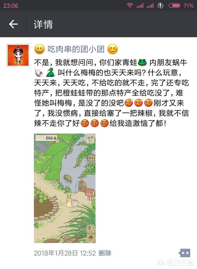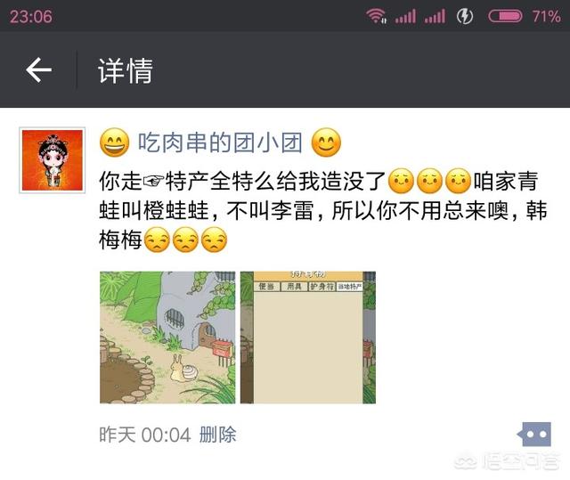 其实也不是我坏,辣椒是昨天我家剩的最后两根特产了,为了招待他我的辣子鸡丁都没做,把辣椒给了他之后家里啥也没有了,于是我的橙蛙蛙在削了一会儿木头之后被迫上路,在今早给我带了5样特产回来,给我高兴坏了,但更高兴的是我一回庭院,好么【没没】来了,我冲着梅梅大喊:“我家青蛙叫橙蛙蛙,不叫李雷,求你放过他吧,亲爱的韩梅梅。”