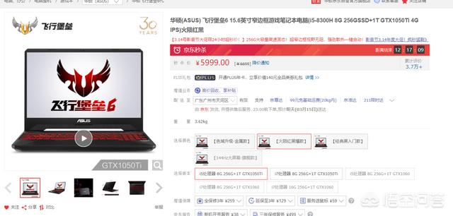 五到六千价位 华硕飞行堡垒六代FX86FE8300 I5 8G1T+256G 1050TI-4G窄边框IPS屏/