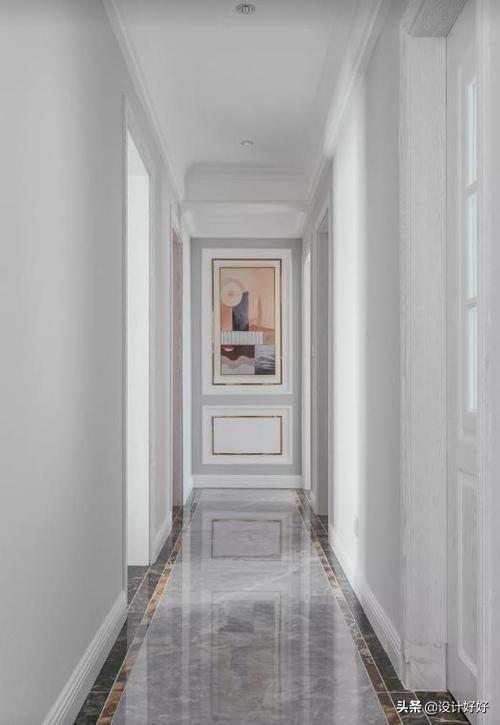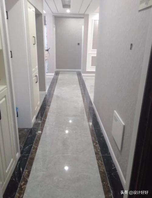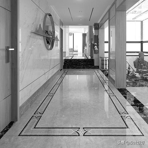 黑白灰的地面装饰,浅灰色地砖适合搭配深灰色,黑色,白色过门石。