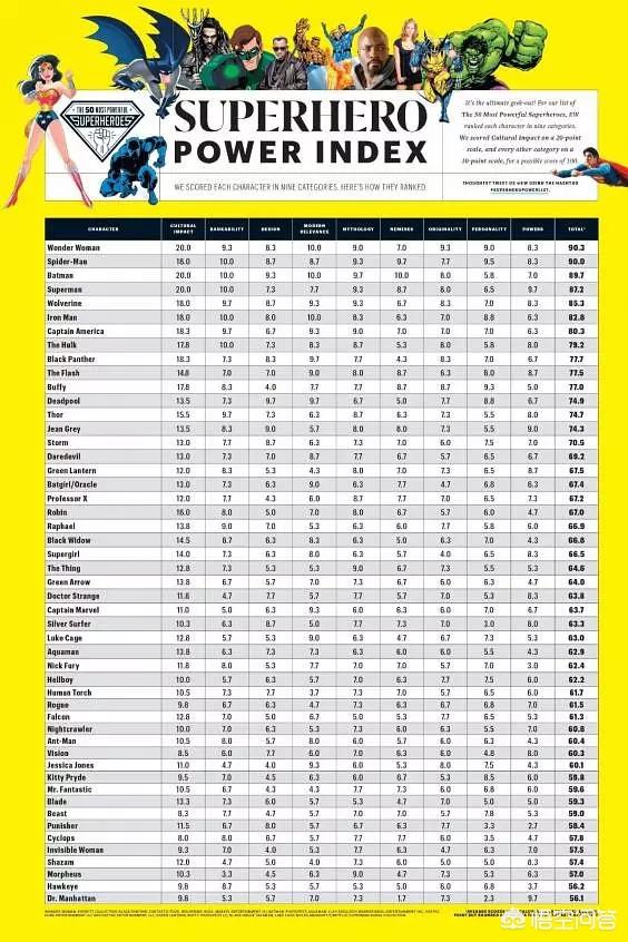 美国《娱乐周刊》发布的号称“史上最精确”的50大最具影响力超级英雄排行榜中,蜘蛛侠又一次从一众DC角色中杀出重围勇夺亚军,单枪匹马捍卫了漫威超级英雄的地位和影响。