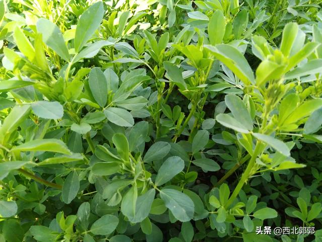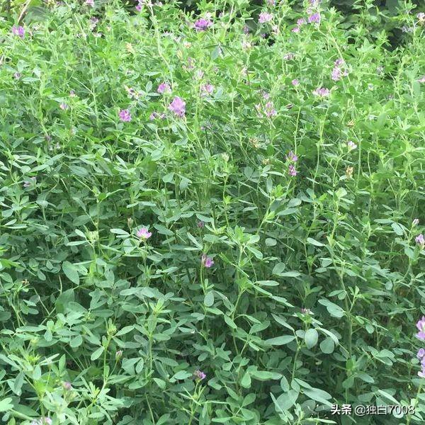 这种牧草在我们这里最常见,我们村所有的土地都被种植大户承包种上了紫花苜蓿。因为我在以前的问答中经常会提到紫花苜蓿,这里只做个简单介绍,感兴趣的朋友可以翻看我以前的问答,连图片都是我自己拍摄。紫花苜蓿是一种多年生豆科类草本植物,营养丰富、产量高,被称为“牧草之王”。紫花苜蓿平均寿命为5~7年,一年可以收割3~4茬,亩产鲜苜蓿草6000~8000公斤,可以饲喂15只左右的羊,3~5头左右的牛。