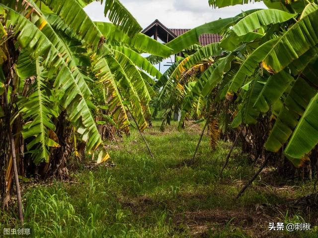 种植芭蕉树方法简单,只消挖一坨块茎或者小株芭蕉苗随便栽种到一个不起眼的地方即可,由此而可能长出一大片芭蕉树,只要成势,不用管理也能年年有的收割。刺楸家里的芭蕉林已经栽了三十几年了,从来没管过,经常砍来喂牛。