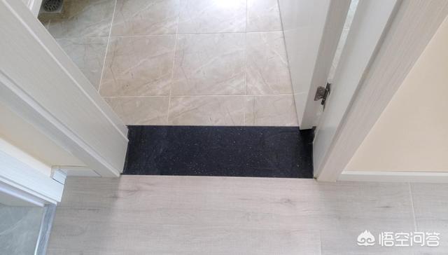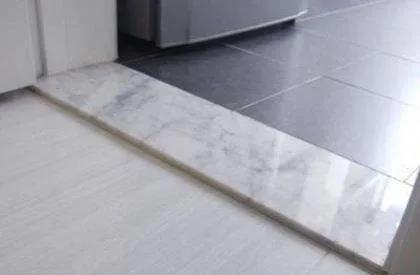 听师傅一讲,原来还有很多人做反了。但我觉得只是一块过门石而已,直接全部铺上地板不就行了吗?可别小瞧了这过门石,它的用处可大了。过门石材质多种多样(大理石、瓷砖拼接以及马赛克等),一般与地板的颜色、材质不同,这样能够使得功能区划更加明确;
