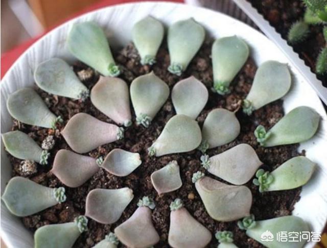 如果不是意外碰掉的,在摘取叶片时,一定要注意不要伤到生长点,只要生长点没有破坏,即使是半片也没关系,摘下的叶片放在阴凉通风处,待伤口完全风干愈合后再平铺在土面上即可,不用插在土里。有些花友掰掉叶片后晾干时间不足,伤口没有愈合,再插进土里,直接导致叶片感染变黑、化水。