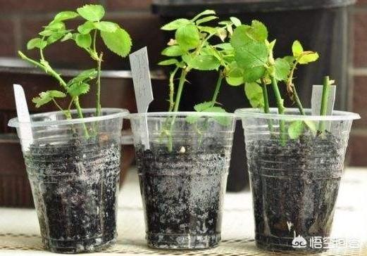 如果没有这两种土,还可以用蛭石托盘法。这用方法比较容易管理,而且可以看到发根情况。首先把一次透明杯子底部弄几个洞,放上蛭石浇水,插月季枝,找一个底盘倒上水,把杯子放在盘子上,保持底盘有浅水即可,大概一个月后,可以看到杯子里长满了根须,新叶长出变绿就可以移栽。
