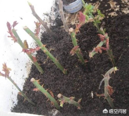 如果蛭石也没有,那就沙土法,直接把月季枝插在沙土中,看到沙土发白缺水时浇水,这种生根比蛭石健壮,缺点是不利于脱土移栽。