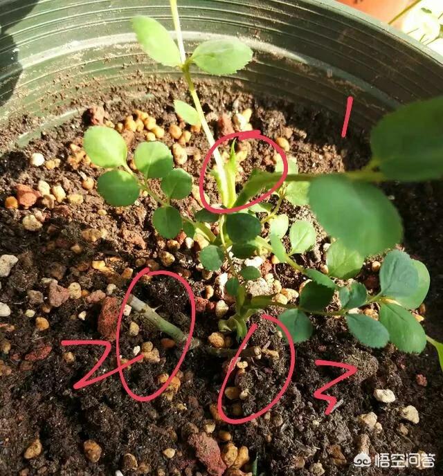 1是新芽,题主问的应该就是2、3两个圈里面的月季老枝条,现在看起来没萌动迹象,更是看起来柔弱不堪,估计还担心会不会凋亡去。