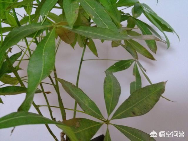 3、空气湿度不够也会造成发财树叶子。卷曲发皱,长时间在室内空气不流通,空气干燥,湿度低,发财树叶子在空气中吸收不到水分就会发皱,你在室内养发财树的时候,多喷水,保证一定的湿度。
