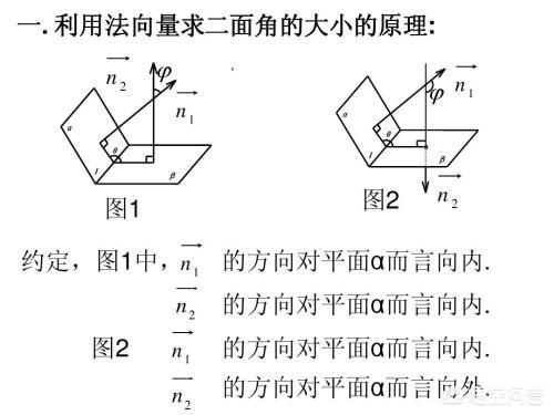 二面角内部看法向量的方向,法向量方向一进一出,角相等,同进同出角互补