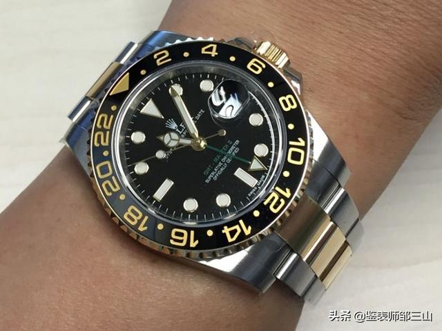 50岁男士佩戴劳力士间金的格林尼治可以考虑这款间金绿针黑面的款式上手会显得更沉稳大气一些,这款格林尼治型II也被表友们称为“绿针”,配备24小时旋转外圈,两个时区的时间更可同步阅读,对旅行家而言,此功能极具实用价值。40毫米格林尼治型 II 是劳力士的代表性款式,其外圈镶有抗刮损黑色Cerachrom字圈,制作每个这样的字圈都需要花费40个工时。机芯采用劳力士自行研制的3186型自动上链机芯。除了传统的时、分、秒针外,并配有24小时指针以显示第二市区。