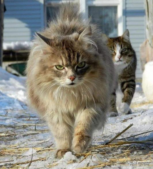 缅因猫,毛发比较浓厚,这种猫咪虽然对自己的家人和主人比较温顺,但是在野外,就像一种超级的猎手一样,这种猫咪有浓厚的猎性,经常会出入一些当地的森林,它们释放出的杀伤力,绝对是当地小动物的天敌,猎杀的技巧就像原始的猫科动物一样,迅猛而用犀利!