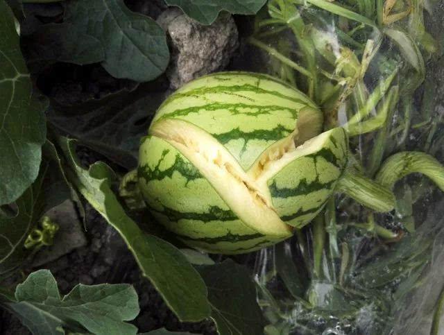 还有就是比较长时间频繁的降雨之后,天气放晴高温持续的情况下,这西瓜也是会出现裂瓜现象的,当然这点因素在我家那边一般是占主要部分的。