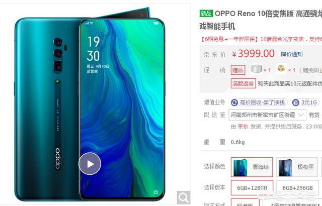 一,高端手机,10X倍光学混合变焦版本的,OPPO RENO价格是3999元的价格。