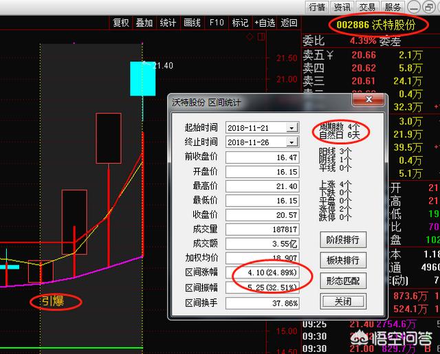 2、002886沃特股份,该股在11月21日出现了引爆的信号,本人立即在实战群中讲解此股,截止目前4个交易日涨幅高达24%。