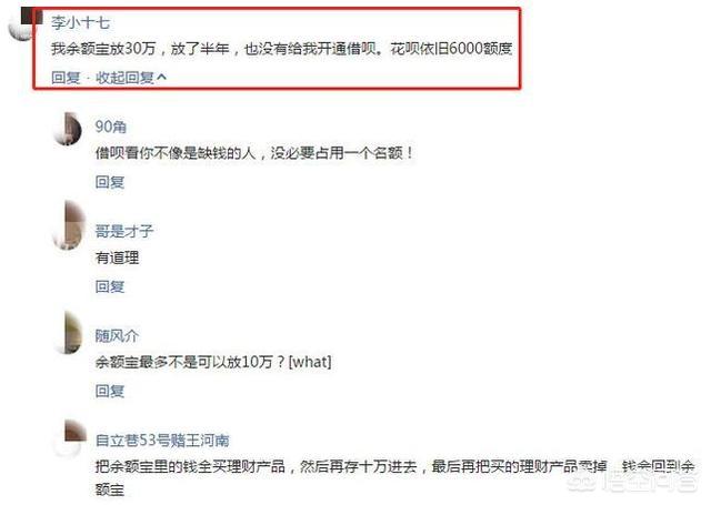 不仅如此,有网友还表示:要想花呗借呗额度上涨,最直接的办法还是往余额宝里存钱,在这里小编想说的是,要是有钱存余额宝,还需要花呗与借呗来干嘛?额度高拿来看吗?有点好笑吧。