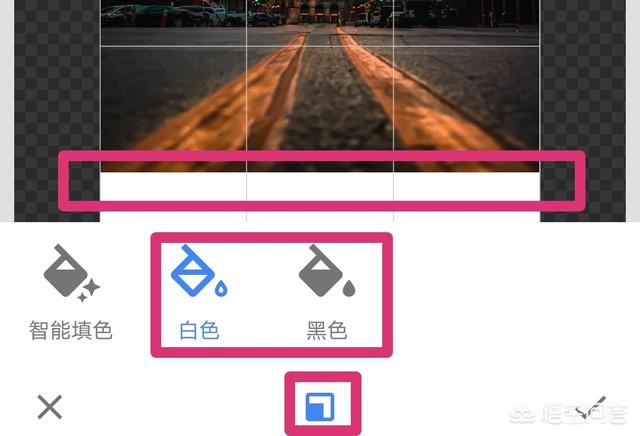 (2)再用Snapseed打开建筑照片。工具,展开。把建筑照片下方展开,添加白色或黑色,不要只能添加。因每次只能展开一部分,所以要多次展开。