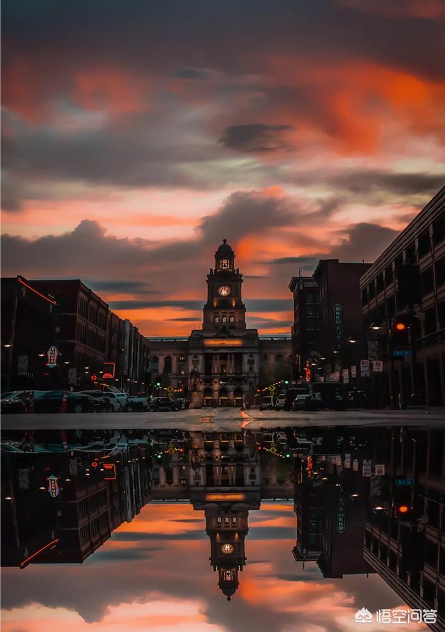 我们还可以通过后期修图,把常见的建筑,修成漂亮的倒影效果: