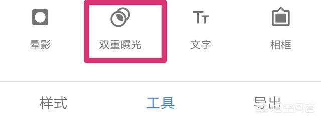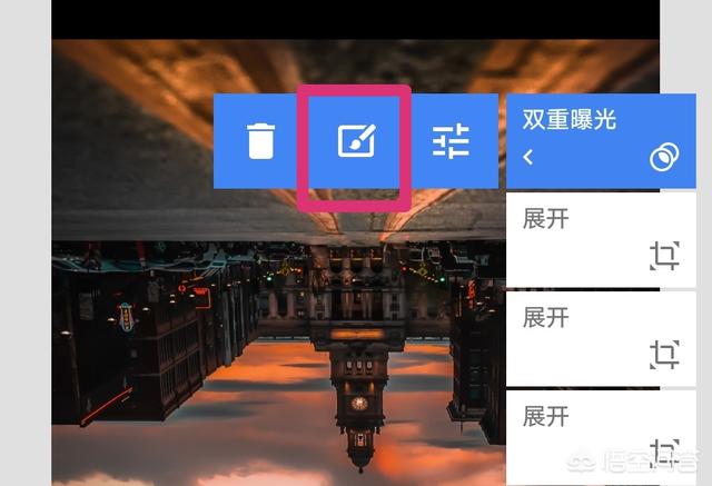 (5)依次点击,右上角弯曲箭头,查看修改内容,双重曝光,中间画笔。