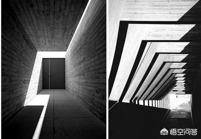 (1)有缝隙的廊道,在有光的上午或者下午时,站在廊道一头,不要站中间,而是左右移动,可以拍出近大远小的递进缩减效果。此时光影会让建筑棱角更分明,更有韵律。