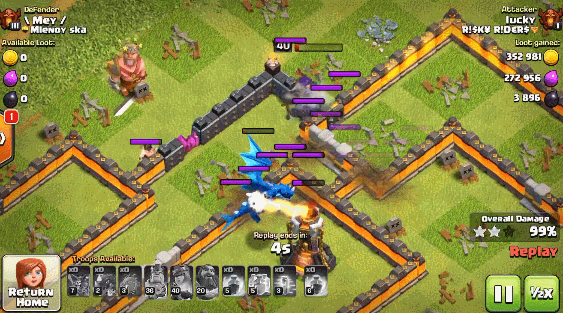 ⑤援兵的选择:这就得看实际阵型了,要是天鹰火炮等级较高我们可以选择用飞艇爆掉;要防御都不高构不成威胁的话我们可以选择战车带天女进攻火力点(手中的狂暴别吝啬,女皇技能留在后面开);如防御建筑较集中,我们可以试试用大气球(先用气球探探雷);