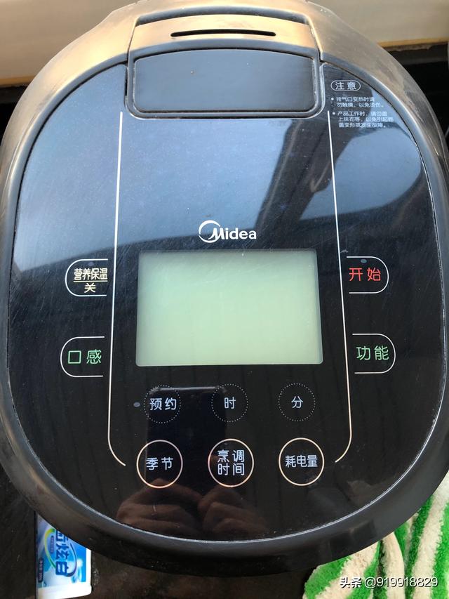 2、然后用沾了白醋的毛巾,擦拭电饭煲表面。