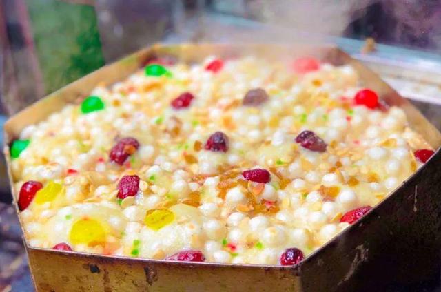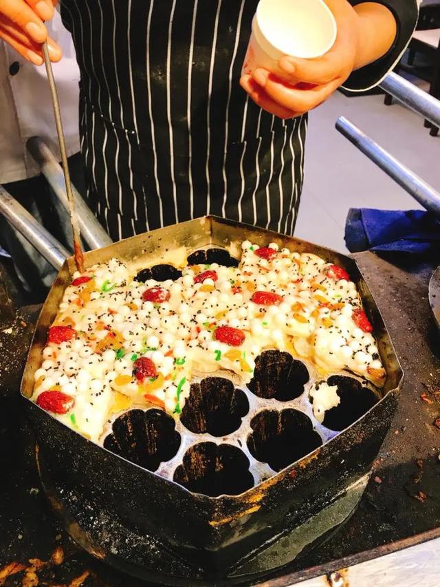 这里有很特别的肉馅梅花糕,和梅花糕的传统不同,它的香菇鸡蛋肉馅和第一层甜的小元宵一点也不冲突,吃完甜的到咸的,是一种不同的味道冲击。