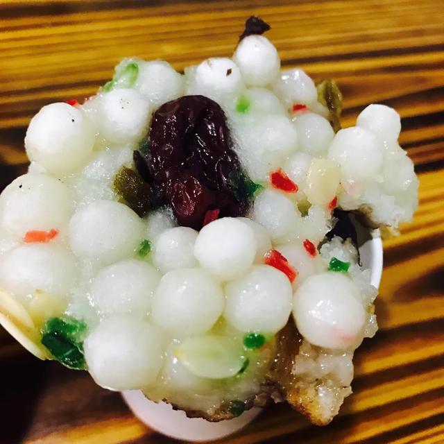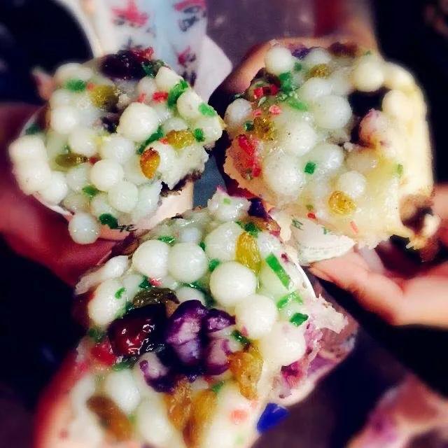 这里有最原始的豆沙馅,另外还有创新的紫薯馅和水果馅。他们家的梅花糕不会很甜,小汤圆口感弹牙,还会配上瓜子仁葡萄干还有一粒红枣。