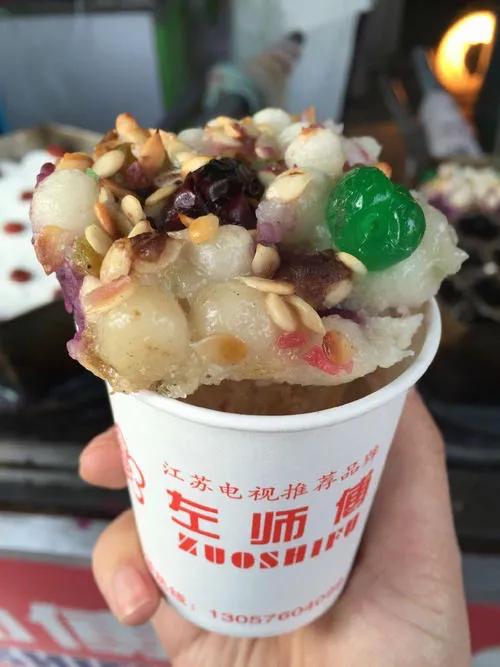 3赤豆酒酿圆子——这道小吃是南京的一道特色甜点。红豆煮的较软烂,入口即化。搭配用糯米制作而成的圆子,再加入酒酿,味道可口,别具风味。吃喜欢吃甜食的食客,不可错过的一道美食。