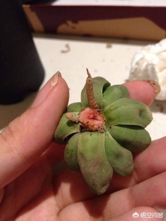 如果多肉植物比较健康,那么接下来需要进行修根晾根。把多肉根系上多余的土清理掉,然后修剪掉毛细根,保留比较粗的主根即可。如果根系过长也可以适当剪短。家里有多菌灵可以用多菌灵浸泡一下根系,避免根系感染细菌。浸泡2-3小时后拿到通风阴凉处晾根。晾根时间取决于你的环境以及根系伤口大小。最少一天。