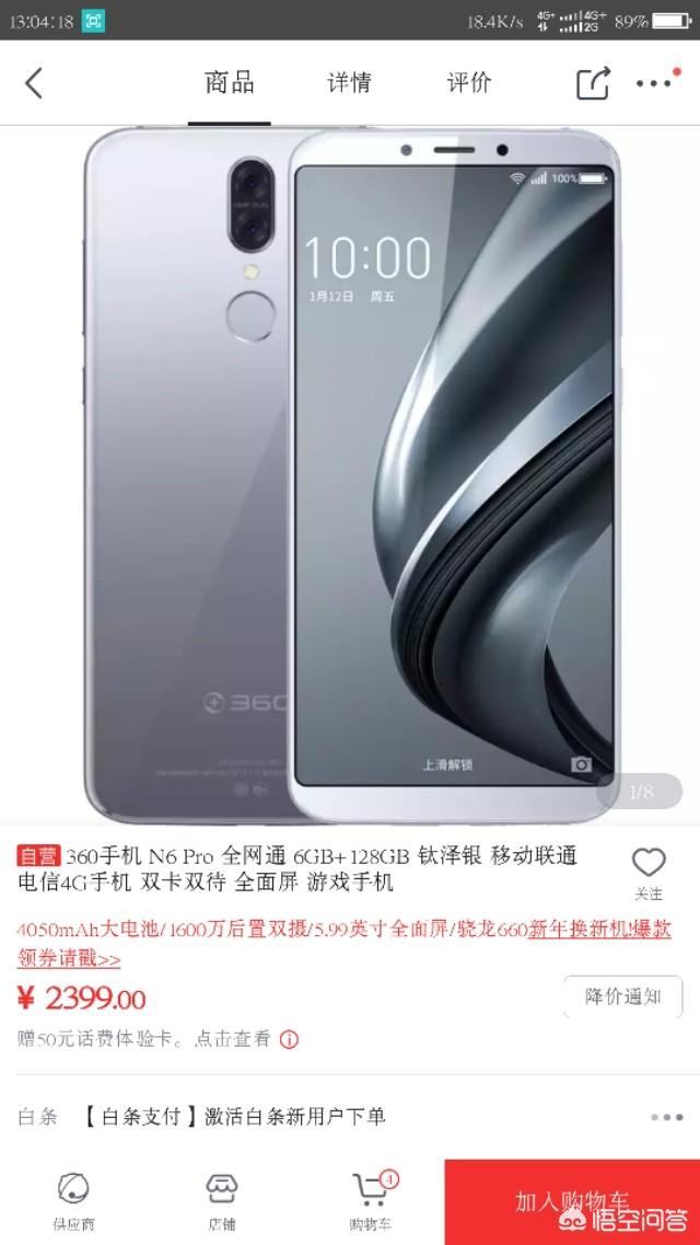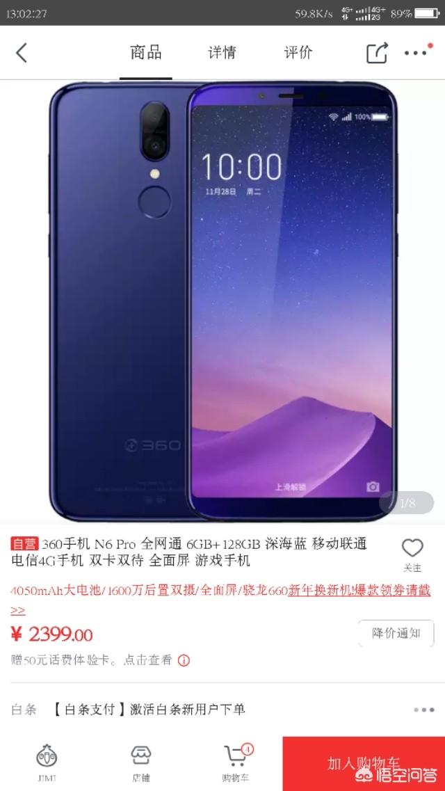 推荐理由:骁龙660处理器、全面屏、18w快充、4050mAh大电池、后置双摄像头