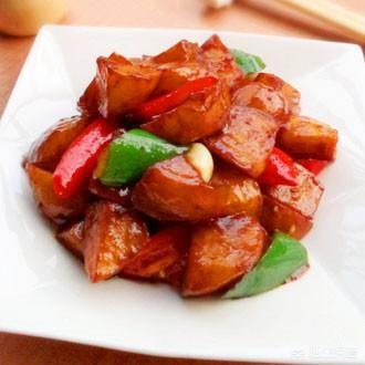 制作:土豆红萝卜切滚刀块,就是你一口能吃下的块,锅烧油五成热土豆红萝卜炸一下八九成熟皮上色为宜。锅中留底油葱姜蒜爆香,放红萝卜土豆,加水放八角,桂皮,香叶,盐,糖,鸡精,老抽,水量没过原料三分之二为宜。大火烧开,转小火烧十分钟,中间翻动一次,让原料均匀入味。然后大火勾芡淋香油出锅。制作完成。