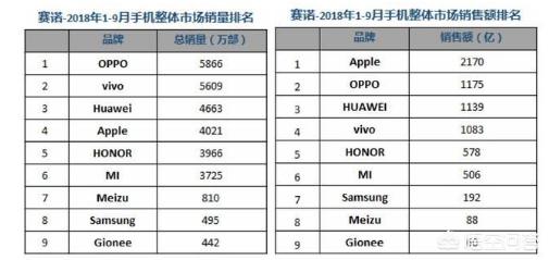 我们看看今年1-9月份的手机销量情况,在这9个月的时间里,OPPO的在国内手机销量遥遥领先,比我们知道的iPhone还要搞1800多万部?可是,这些数据都是假的?要不然,我们没有发现身边的人用OPPO呢?