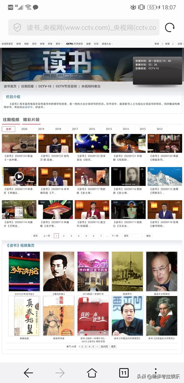 4.凤凰卫视的《开卷八分钟》梁文道老师阅读范围及有深度和广度,推荐的书籍也都不错。重要的是每集只有8分钟,对于现在这种紧凑的生活节奏来说,也是很好的。