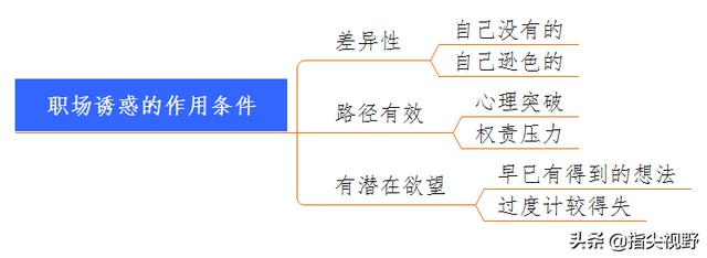 小结:总体上来说,职场诱惑的产生与作用都离不开“源头”、“路径”与“客体目标”这三个关键的要素。是利欲熏心或者虚荣心借助职场的工作关系与职权在那些心理反差较大和自控力较弱的职场人身上发挥了作用,导致不良诱惑现象的出现。