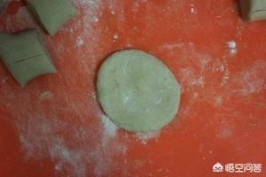 7、然后用刀切成一个个剂子,取一个剂子按扁。