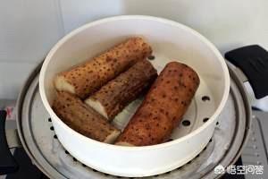 3、把山药洗干净,切段,放上蒸锅蒸10-15分钟。