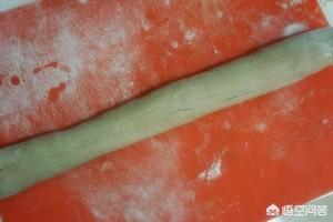 6、这时候面团也发酵好了,把面团搓成一长条。