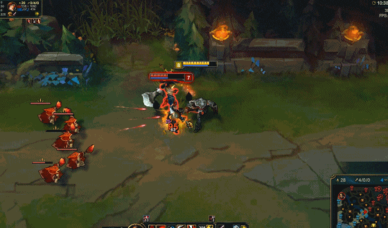 后期诺克的团战思路应该是:打出血怒后进攻敌方C位然后用大战去斩杀C位,如果C位走位较为猥琐就去前排进行输出尽量多挂几个出血被动。