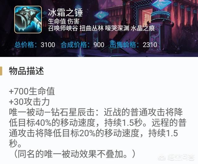 紫雨林之拳合成冰锤,既加血量,又加伤害,最重要的是有减速,极大提升了提莫粘人的能力。