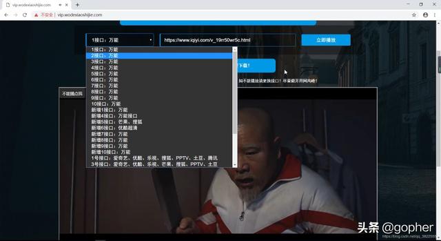 里面提供了很多接口可以选择,将vip影片url地址拷贝进去即可~
