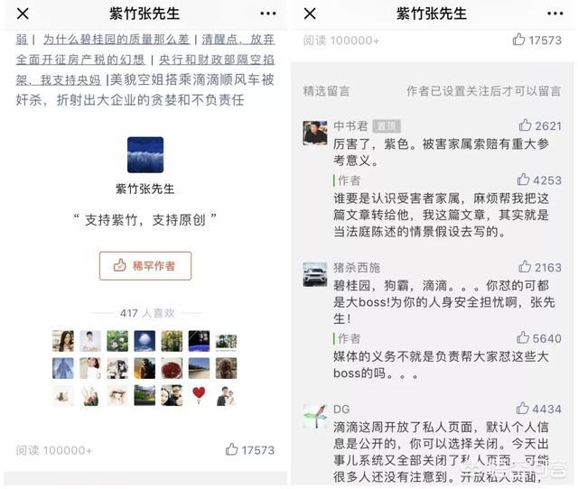 同样是来自一个个人公众号——“紫竹张先生”,文中,这位张先生提醒公众一个问题:“大家有没有发现,这次的遇害,居然又是顺风车,为啥滴滴快车就是不出事,而顺风车老是出事?”