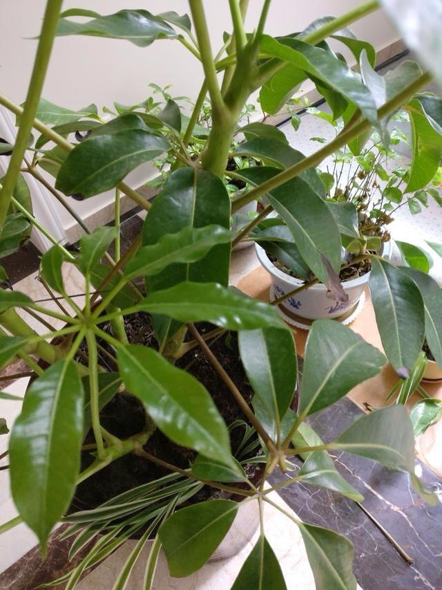 1, 题主描述说此株鹅掌柴曾放在电视机旁边,给大家提醒一下,电视机有散热孔,注意避开。不是所有花卉都适合放在电视机旁边的。还要根据客厅光照安排。鹅掌柴属于木本花卉,相对来说是喜光的。客厅电视机旁光照强才好养护。也可以放在客厅阳台附近,接受阳光。但夏季注意适当遮阴。
