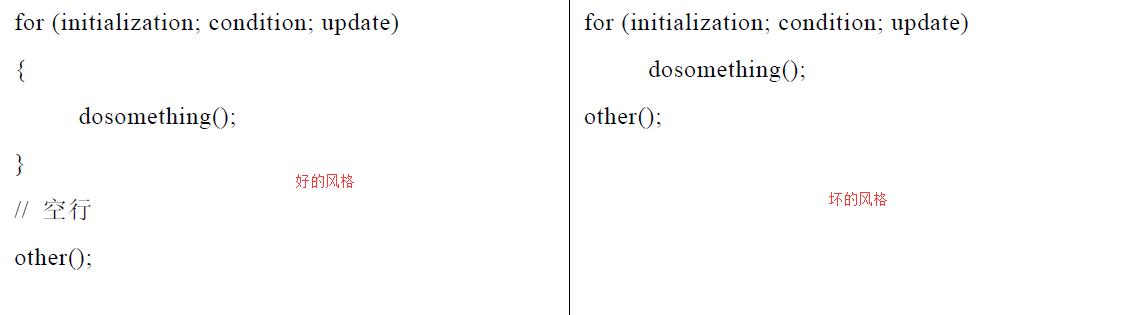 1.编程风格:简单的提几个要点,比如命名习惯,合理使用空行分割代码块、注释、不要省大括号{}与对齐、空格的正确使用等等。